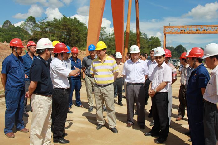 2011年8月3日下午,區(qū)交通運輸廳廳長潘巍一行蒞臨由廣西壯族自治區(qū)公路橋梁工程總公司承建的靖那1標施工現(xiàn)場視察工作。