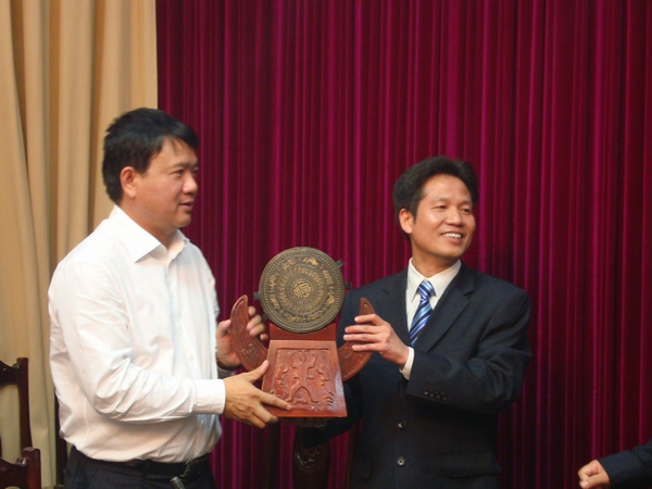 集團公司董事長朱堅和(上圖右)與越南交通運輸部部長丁羅升先生交換禮物。