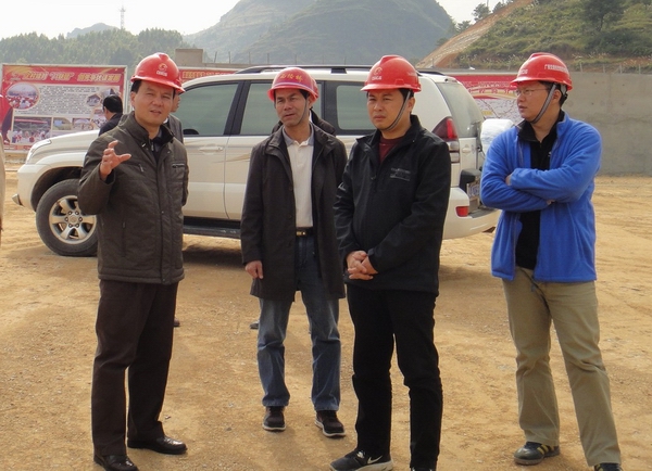 圖2:在檢查施工安全質(zhì)量現(xiàn)場,集團公司副總經(jīng)理劉明洪(左一)與項目相關(guān)領(lǐng)導親切交流
