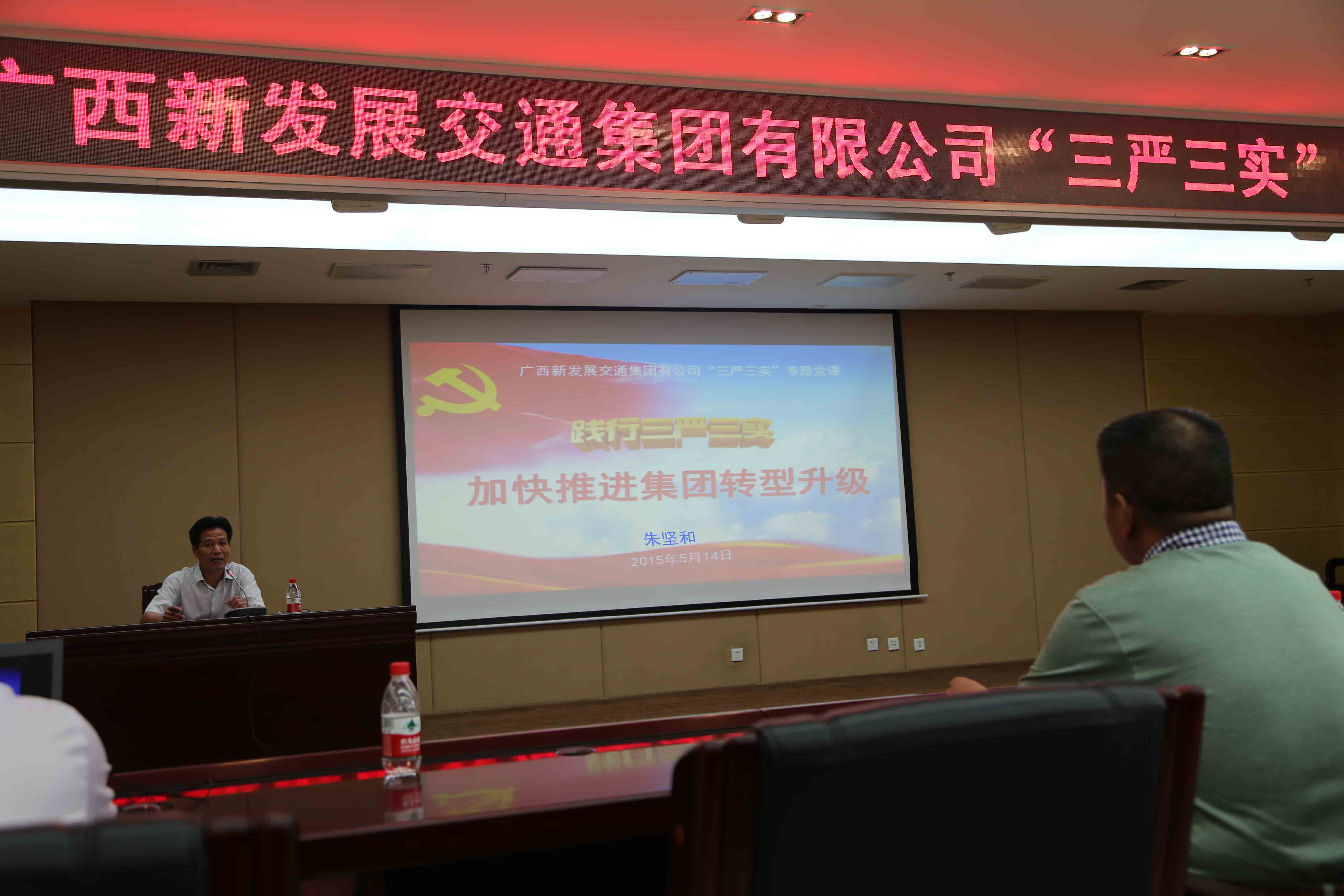 5月14日下午,集團公司黨委書記、董事長朱堅和以《踐行“三嚴三實” 加快推進集團轉(zhuǎn)型升級》為題,帶頭為集團及直屬各企業(yè)領(lǐng)導(dǎo)班子講專題黨課。集團公司黨委副書記、紀委書記張友坐主持黨課。以此次黨課為標志,集團公司“三嚴三實”專題教育正式啟動。