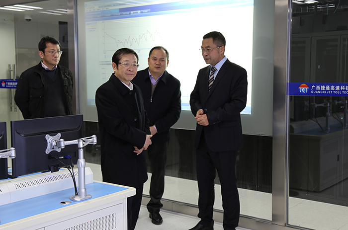 高雄深入了解了廣西ETC項(xiàng)目攻堅(jiān)及實(shí)現(xiàn)全國聯(lián)網(wǎng)后運(yùn)營情況,充分肯定了新發(fā)展集團(tuán)在科技、人才領(lǐng)域的突出優(yōu)勢,特別是近期在參與智慧交通、智慧城市建設(shè)中所作出的努力和貢獻(xiàn)。高雄一行參觀了建設(shè)在捷通公司的全區(qū)ETC系統(tǒng)中心機(jī)房,認(rèn)真聽取了呂毅關(guān)于我區(qū)ETC系統(tǒng)運(yùn)營狀況、八桂行卡發(fā)行量、機(jī)房設(shè)備及安裝運(yùn)轉(zhuǎn)、車載OBU裝載使用等情況匯報(bào)。