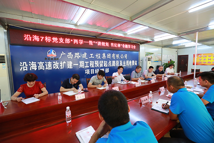 會前,朱堅(jiān)和書記、張友坐副書記還到廣西路建集團(tuán)沿海7標(biāo)施工現(xiàn)場,了解項(xiàng)目的施工進(jìn)展情況,并觀看了項(xiàng)目的“兩學(xué)一做”學(xué)習(xí)教育宣傳欄。