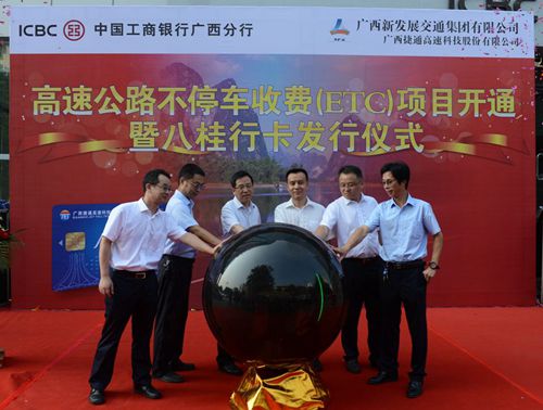 劉明洪在致辭中表示,早在今年3月份,工行就成為廣西首批入圍ETC項(xiàng)目的合作銀行,雙方成功簽署了ETC項(xiàng)目合作協(xié)議,并取得了豐碩的合作成果,此次儀式正式啟動(dòng),標(biāo)志著雙方合作邁上一個(gè)全新的高度。集團(tuán)公司將不斷推進(jìn)ETC業(yè)務(wù)市場(chǎng)拓展,未來ETC將不只限于高速公路收費(fèi),還會(huì)不斷向加油站、停車場(chǎng)、城市小區(qū)、普通公路等相關(guān)領(lǐng)域延伸。