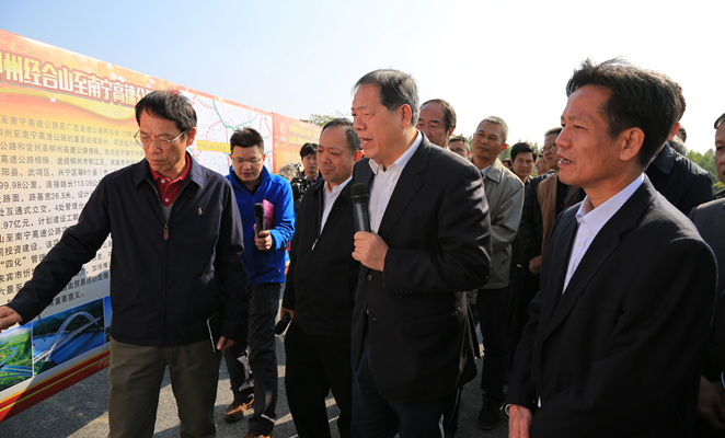 在柳州經(jīng)合山至南寧高速公路(簡稱新柳南高速公路)開工現(xiàn)場會主會場上,集團公司黨委書記、董事長朱堅和向自治區(qū)人民政府副主席陳剛、自治區(qū)交通運輸廳副廳長梁毅等與會領(lǐng)導介紹了新柳南高速公路項目情況,以及集團公司目前承建的自治區(qū)重大建設(shè)項目鐘山至來賓、來賓至巴馬、融水至河池等3個縣縣通高速公路項目建設(shè)情況,朱堅和表示,集團公司致力于成為自治區(qū)黨委、政府最可信賴的交通基礎(chǔ)設(shè)施投資運營力量,全力以赴完成各重大項目建設(shè)任務。