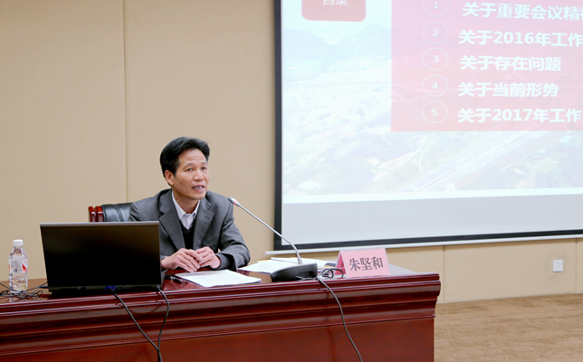 朱堅和在講話指出,2017年乃至整個“十三五”時期,集團(tuán)公司正處于補(bǔ)齊短板、強(qiáng)基固本、結(jié)構(gòu)調(diào)整、提質(zhì)增效、深化改革、創(chuàng)新驅(qū)動、轉(zhuǎn)型升級、二次創(chuàng)業(yè)的黃金時期。我們要堅持穩(wěn)中求進(jìn)工作總基調(diào),堅持牢固樹立新發(fā)展理念,堅持以提高發(fā)展質(zhì)量和效益為中心,緊緊圍繞“再造一個新發(fā)展”宏偉目標(biāo),奮力擔(dān)當(dāng)“開拓更大平臺,發(fā)揮更大作用,承擔(dān)更大責(zé)任”新使命,堅持“一二三四”新戰(zhàn)略,堅持“一轉(zhuǎn)二提三攻堅”新要求,繼續(xù)做好“三篇文章”,全面加強(qiáng)黨的建設(shè),全力推進(jìn)“轉(zhuǎn)型升級、二次創(chuàng)業(yè)”,努力成為自治區(qū)黨委政府最可信賴的依靠力量。