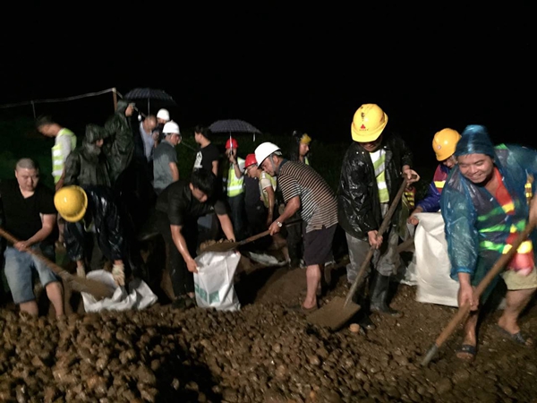 “十萬(wàn)壟大堤出現(xiàn)險(xiǎn)情,大家快去救援?!?月1日21時(shí),湖南省湘潭市,廣西路橋集團(tuán)環(huán)東路項(xiàng)目經(jīng)理部項(xiàng)目常務(wù)副總工程師宋佩超立即組織項(xiàng)目經(jīng)理部員工一起奔赴一線。當(dāng)時(shí)湘潭市十萬(wàn)壟湘江大堤出現(xiàn)直徑約20公分左右管涌,情況十分緊急,附近的新馬路項(xiàng)目部出動(dòng)挖掘機(jī)和裝載機(jī)進(jìn)行搶險(xiǎn)救援。同時(shí),項(xiàng)目經(jīng)理部全體員工與當(dāng)?shù)鼐仍?duì)伍一起排起了長(zhǎng)龍,齊聲喊著口號(hào)“一二”、“一二”裝沙袋、傳運(yùn)沙袋,幫助封堵大堤漏洞。