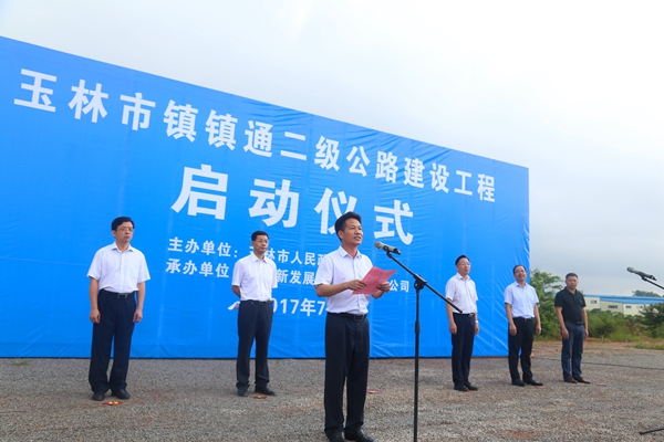 玉林市交通運(yùn)輸局局長何東真主持儀式。玉林市市交運(yùn)局、發(fā)改委、住建委、國土局、林業(yè)局等相關(guān)部門負(fù)責(zé)人,各縣(市、區(qū))政府分管交通工作有關(guān)部門負(fù)責(zé)人、興業(yè)縣干群代表以及新發(fā)展集團(tuán)下屬企業(yè)代表參加了啟動(dòng)儀式。(陳福喜 文/圖)