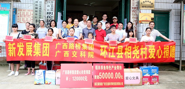 去年,新發(fā)展集團總部和直屬各企業(yè)員工踴躍捐款,籌集愛心款項33萬元。其中,明倫鎮(zhèn)相堯村建設“農(nóng)村書屋”,設立“愛心助學基金會”幫助百余名貧困山區(qū)學子讀書圓夢,以實際行動援助扶貧村,力爭實現(xiàn)“扶貧先扶智”的目標。轉(zhuǎn)眼已是2017年,美麗的象牙塔令人憧憬,但仍有許多優(yōu)秀學子正在為入學費用發(fā)愁,甚至因為家庭困難而錯失升學機會,為將愛心延續(xù),扶貧后援單位廣西路橋集團積極發(fā)動廣大員工繼續(xù)為相堯村貧困學子募集愛心捐款,共籌集到捐款共計12萬元,成為“愛心助學基金會”第二筆愛心基金。今年,基金會將資助相堯村120余名貧困學子每人1000元左右,幫助其順利完成學業(yè)。為資助該村稻田養(yǎng)魚扶持項目,廣西交通科學研究院有限公司捐贈5萬元,并成立特色產(chǎn)業(yè)發(fā)展基金。