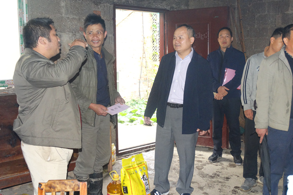 在樂業(yè)縣邏西鄉(xiāng),唐咸秋總經(jīng)理來到集團公司扶貧聯(lián)系點中停村,開展走訪慰問、扶貧工作調(diào)研活動。在與駐村第一書記、村兩委干部、村民代表、貧困戶代表座談時,唐咸秋總經(jīng)理表示集團公司將進一步加大精準幫扶工作力度,支持中停村集體經(jīng)濟發(fā)展,幫助改善群眾交通出行條件。扶貧要先扶志,駐村“第一書記”要在思想教育上加大幫扶力度。座談會后舉行了捐贈儀式,唐咸秋同志代表集團公司向中停村捐款3萬元,用于村集體經(jīng)濟(冰脆李種植基地)建設發(fā)展項目,并捐贈了1臺打印機,同時向貧困戶捐贈慰問品和慰問金,給貧困村送去溫暖和關懷。