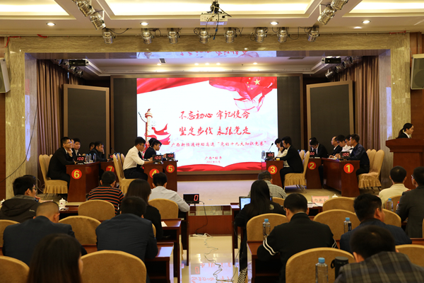 11月15日,新恒通公司賀巴高速(鐘山至昭平段)建設(shè)指揮部黨支部精心組織,舉辦了一次高質(zhì)量的黨的十九大知識競賽。活動(dòng)以“不忘初心、牢記使命,堅(jiān)定步伐、勇跟黨走”為主題,各參建單位7個(gè)代表隊(duì)參加了比賽,指揮部代表隊(duì)以480分摘得桂冠。