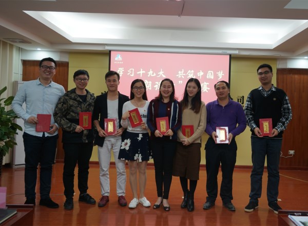 比賽產(chǎn)生一等獎(jiǎng)一名,二等獎(jiǎng)兩名,三等獎(jiǎng)五名,公司副總經(jīng)理、指揮部指揮長、黨支部書記陸原恩為獲獎(jiǎng)?wù)哳C發(fā)了榮譽(yù)證書和黨的十九大相關(guān)學(xué)習(xí)書籍。