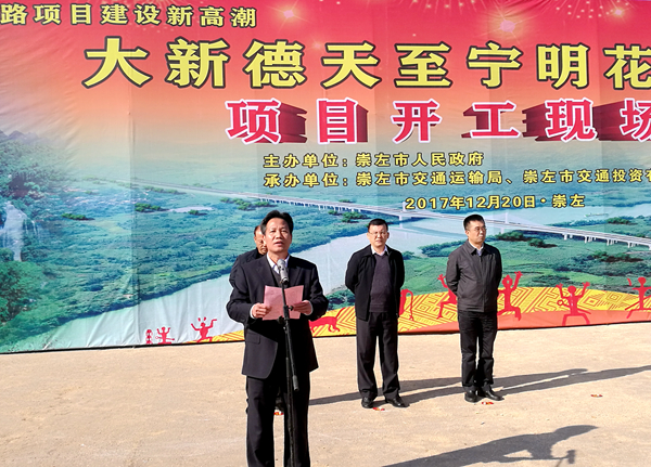 12月20日,崇左市大新德天至寧明花山公路舉行開(kāi)工儀式,集團(tuán)公司黨委書(shū)記、董事長(zhǎng)朱堅(jiān)和,集團(tuán)公司黨委副書(shū)記、副董事長(zhǎng)、總經(jīng)理唐咸秋,路橋工程集團(tuán)及設(shè)計(jì)院有限公司相關(guān)負(fù)責(zé)人參加了開(kāi)工儀式。