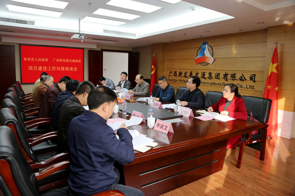 1月24日,來(lái)賓市人民政府副市長(zhǎng)韋平率隊(duì)來(lái)訪,與集團(tuán)公司黨委副書記、副董事長(zhǎng)、總經(jīng)理唐咸秋等領(lǐng)導(dǎo)進(jìn)行高速公路及路網(wǎng)建設(shè)項(xiàng)目工作對(duì)接。