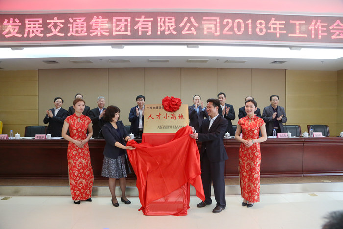 會(huì)后,自治區(qū)國(guó)資委副巡視員鞏學(xué)青與集團(tuán)公司黨委書記、董事長(zhǎng)朱堅(jiān)和一同為集團(tuán)公司“廣西交通建設(shè)人才小高地”揭牌。