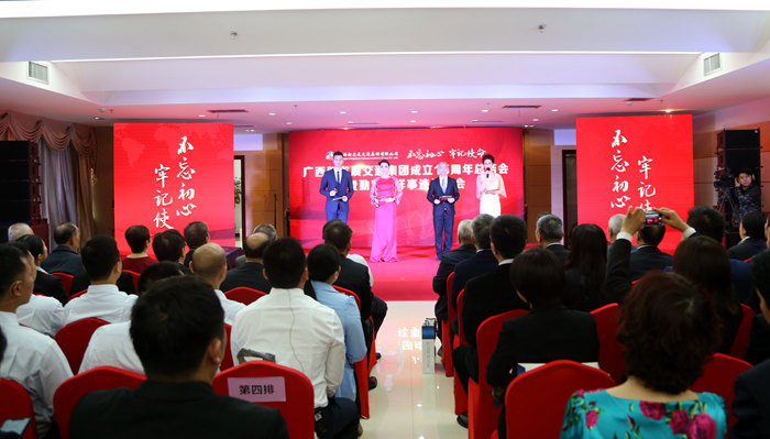 在活動(dòng)現(xiàn)場(chǎng)入口處,設(shè)置有一面企業(yè)發(fā)展歷程墻,展示了歷年來集團(tuán)公司發(fā)展取得的矚目成績(jī)?;顒?dòng)開始后首先播放了《新時(shí)代 新發(fā)展 新征程》——廣西新發(fā)展交通集團(tuán)15周年紀(jì)錄片,對(duì)15年發(fā)展史進(jìn)行了有聲有色的回顧。