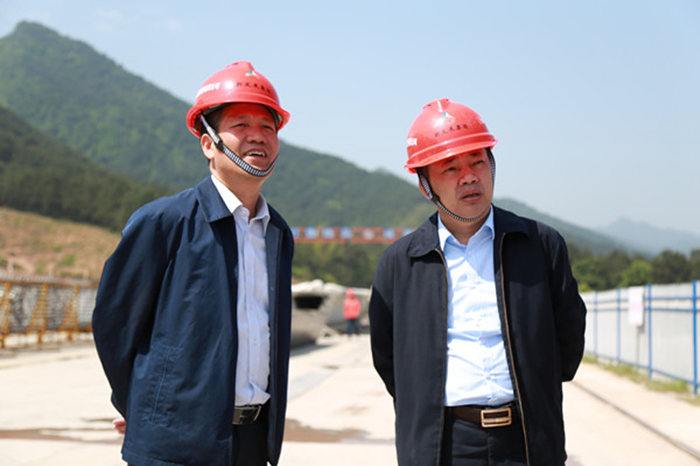 圖五:集團(tuán)公司黨委書記、董事長朱堅和(左)與賀州市副市長陳翼明(右)在施工現(xiàn)場調(diào)研