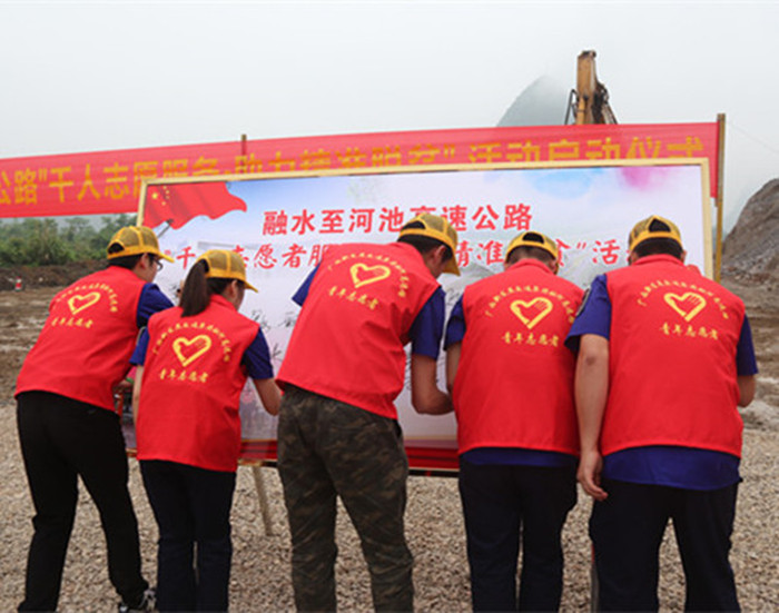 5月4日,廣西新發(fā)展交通集團賀州至巴馬、融水至河池等高速公路同時舉行啟動儀式,全面啟動“千人志愿服務(wù) 助力精準脫貧”活動。集團公司黨委副書記、工會主席翁科,集團公司紀委書記韋慶和出席活動。沿線政府代表、新恒通公司領(lǐng)導(dǎo),各參建單位志愿者代表參與了在各地舉行的啟動儀式。
