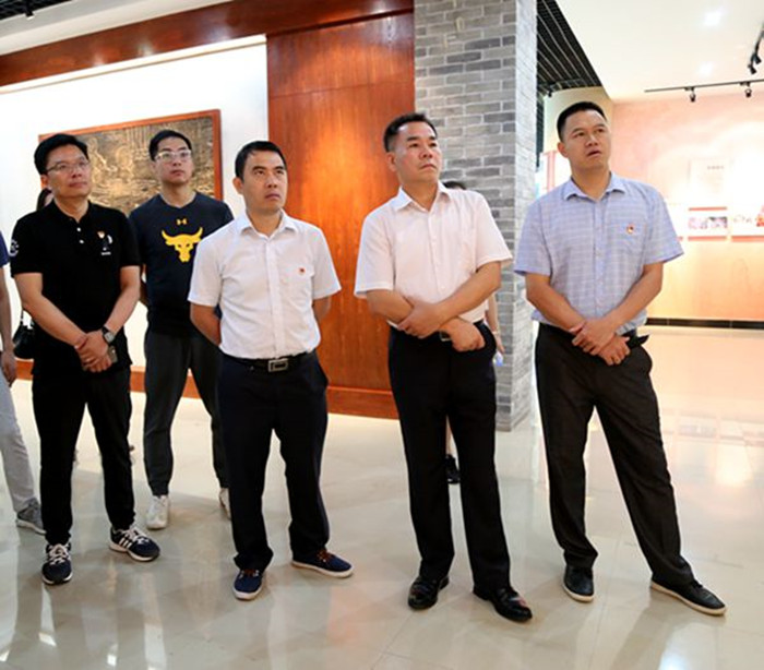圖一:集團(tuán)公司紀(jì)委書(shū)記韋慶和(右二)、新恒通公司黨委書(shū)記賴(lài)水平(右一)帶隊(duì)參觀(guān)于成龍廉政文化展示館