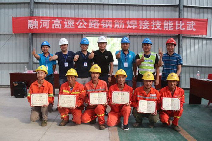 當(dāng)參賽選手調(diào)試好設(shè)備,將比賽所需材料準(zhǔn)備妥當(dāng)之后,隨著主持人一聲令下,參賽選手立即嚴(yán)格按照相關(guān)安全操作規(guī)定,緊張而有序地進(jìn)行鋼筋焊接。一時(shí)間賽場上焊花四起,引來不少技術(shù)工人觀摩學(xué)習(xí)。經(jīng)過兩個(gè)多小時(shí)的激烈角逐,各位參賽選手相繼完成焊接作業(yè)。評委小組成員仔細(xì)查看每一件參賽作品,嚴(yán)格按照評分標(biāo)準(zhǔn)采用儀器對鋼筋試件進(jìn)行檢測評分。經(jīng)過評委小組客觀、公正、公平的評審。最終胡滿倉、韋加生等六名選手脫穎而出,分別以小組第一、第二名的成績,榮獲融河高速“最美工匠”稱號。