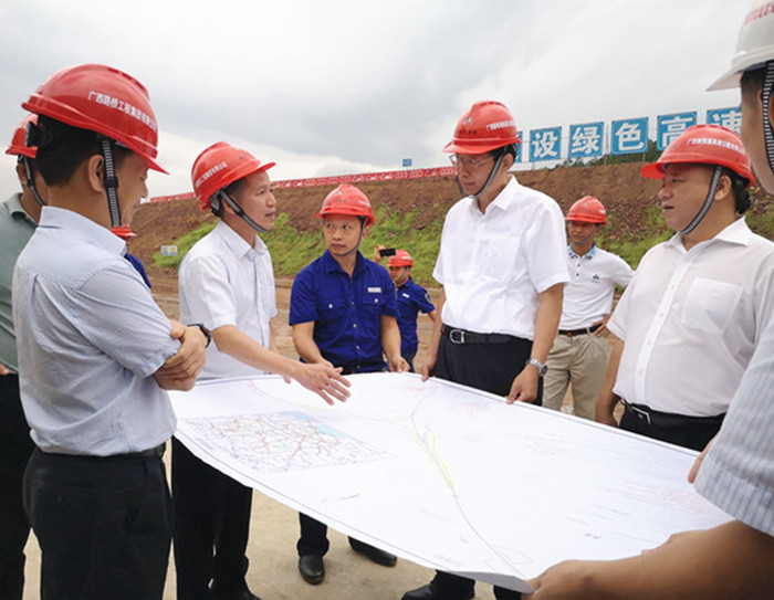 7月13日下午,自治區(qū)副主席費(fèi)志榮到賀巴高速鐘昭段同古互通調(diào)研,賀州市市長(zhǎng)林冠,自治區(qū)工業(yè)和信息化委巡視員彭健銘、自治區(qū)交通運(yùn)輸廳副廳長(zhǎng)王劼耘等同志隨行調(diào)研。集團(tuán)公司黨委書(shū)記、董事長(zhǎng)朱堅(jiān)和,集團(tuán)公司副總經(jīng)理李德智,新恒通公司領(lǐng)導(dǎo)藍(lán)日彥、馮學(xué)茂等陪同。