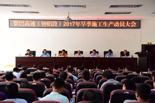 8月18日,賀州至巴馬高速公路(鐘山至昭平段)(以下簡稱鐘昭高速)2017年旱季施工生產(chǎn)動員大會在昭平召開。集團公司有關領導,公司黨總支書記、董事長、總經(jīng)理賴水平,新恒通公司常務副總經(jīng)理蘇偉勝等領導出席會議,各參建單位共180人參加會議。