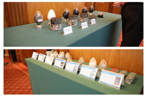 圖為集團(tuán)公司領(lǐng)導(dǎo)、各專家參觀交科院路面新型材料展及會場剪影