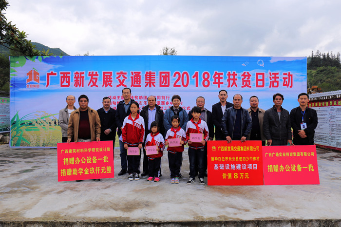 2018年10月17日是我國(guó)第5個(gè)扶貧日,按照自治區(qū)統(tǒng)一部署,新發(fā)展交通集團(tuán)以“扶貧助困 共同前行”為主題,深入環(huán)江縣、樂(lè)業(yè)縣、合山市5個(gè)扶貧聯(lián)系村開展走訪慰問(wèn)、基礎(chǔ)設(shè)施建設(shè)及產(chǎn)業(yè)項(xiàng)目援助、金秋助學(xué)、志愿聯(lián)建等活動(dòng)。
