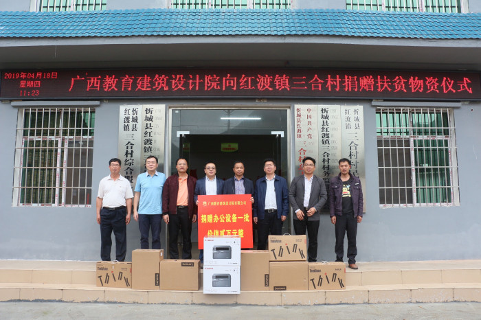 4月18日,廣西教育建筑設(shè)計(jì)院有限公司黨支部書記、執(zhí)行董事梁志率隊(duì)到忻城縣紅渡鎮(zhèn)三合村開展扶貧慰問,并向三合村委捐贈(zèng)了一批價(jià)值2萬元的辦公設(shè)備,用于駐村扶貧工作隊(duì)員開展扶貧工作。教育設(shè)計(jì)院副院長(zhǎng)鄧江,忻城縣委常委、縣人民政府副縣長(zhǎng)王華,縣政協(xié)副主席、紅渡鎮(zhèn)黨委書記羅健康同時(shí)參加捐贈(zèng)儀式。