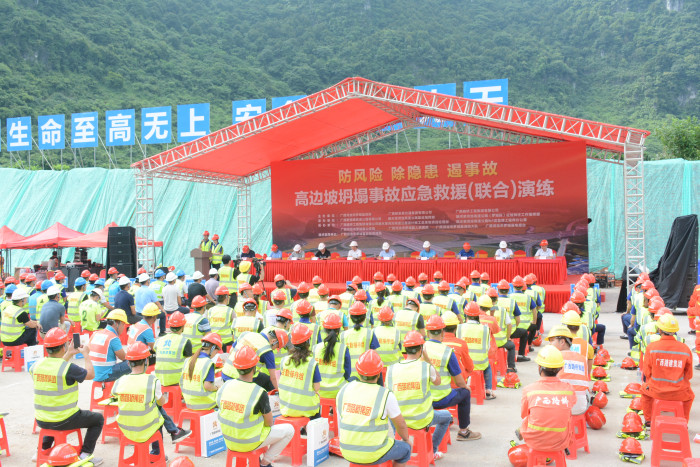 作為“防風(fēng)險(xiǎn) 除隱患 遏事故”主題“安全生產(chǎn)月”活動內(nèi)容之一,該演練結(jié)合融水至河池高速公路項(xiàng)目施工中存在的高邊坡坍塌重大危險(xiǎn)源的特點(diǎn),旨在加強(qiáng)參建人員安全防范意識,提高安全應(yīng)急處置、救援能力。