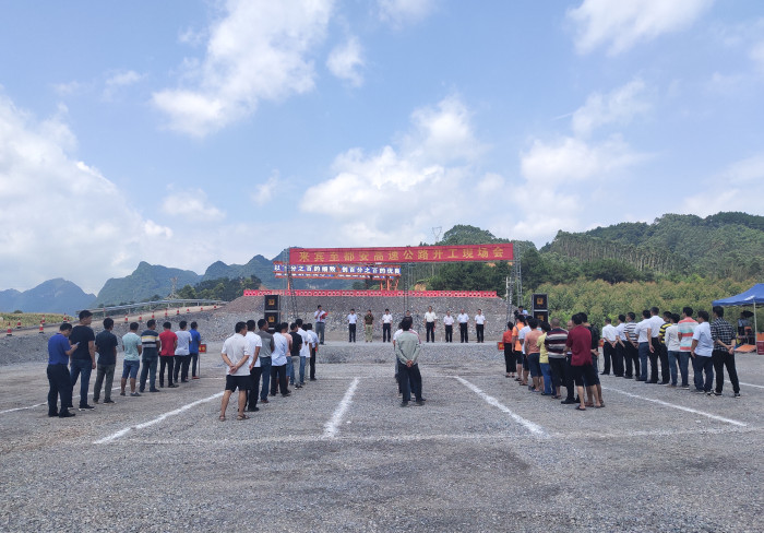 開工現(xiàn)場會在河池市都安瑤族自治縣召開。廣西北部灣投資集團(tuán)有限公司黨委副書記、副董事長、總經(jīng)理高新宣布項(xiàng)目開工。自治區(qū)高速公路管理局局長周北,河池市委常委、市人民政府常務(wù)副市長韋朝暉等領(lǐng)導(dǎo)參加會議。